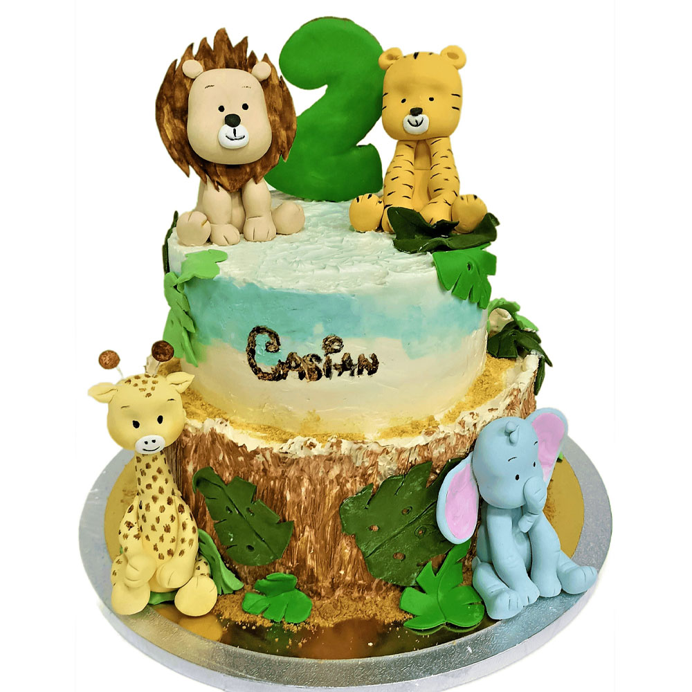 Tort „junglă” cu figurine comestibile, lucrate manual. Decorul nu intră in prețul si greutatea tortului