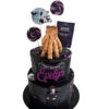 Tort îmbrăcat in cremă de unt și fondant,  decorat cu figurine comestibile realizate manual