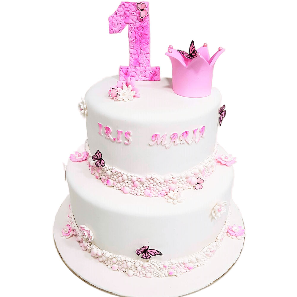 Tort cu decor din fondant , 100% comestibil , realizat manual