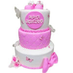 Tort de botez sau turta /moț cu decor din fondant , 100% comestibil , realizat manual